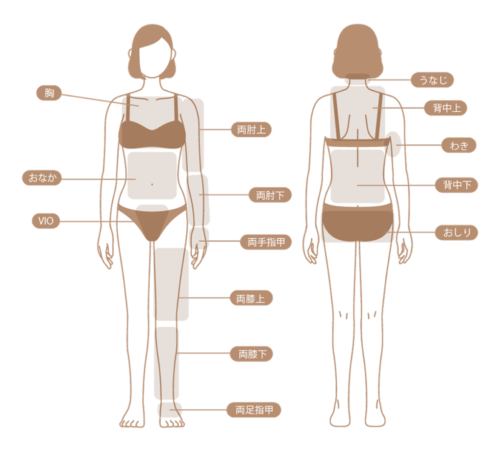 ※ご来店前日までに施術予定箇所を